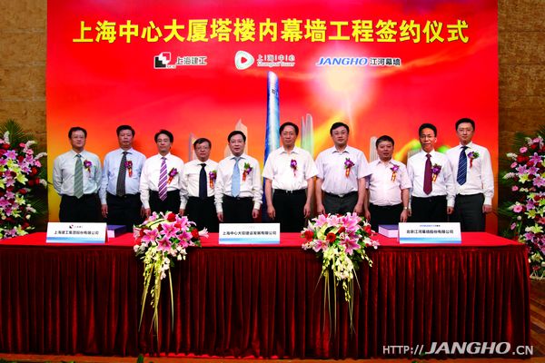 7月8日,以高度632米尊為“中國第一高樓”的上海中心大廈塔樓內幕墻工程簽約儀式在北京市順義賓館隆重舉行。上海中心大廈建設發展有限公司、上海建工集團股份有限公司、北京江河幕墻股份有限公司作為簽約三方共同簽署了合同文本,強強聯合寓意深遠。