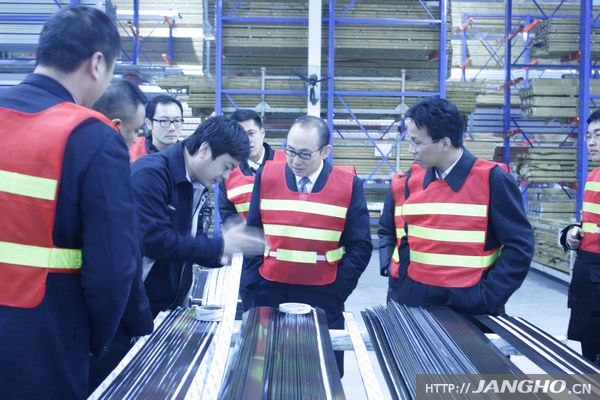 隨后,潘董事長(zhǎng)一行與公司劉董事長(zhǎng)等高層領(lǐng)導(dǎo)進(jìn)行了親切友好的座談。座談結(jié)束后,考察組一行在劉董事長(zhǎng)的陪同下,前往江河幕墻建成并投產(chǎn)的全球幕墻行業(yè)最大的單體幕墻制造工廠。在國(guó)際一流、國(guó)內(nèi)領(lǐng)先的現(xiàn)代化工廠內(nèi),潘董事長(zhǎng)一行細(xì)致考察了江河幕墻行業(yè)領(lǐng)先的技術(shù)設(shè)備、倉(cāng)儲(chǔ)車間、自動(dòng)化流水線及成品包裝養(yǎng)護(hù)等,對(duì)部分江河幕墻獨(dú)創(chuàng)的技術(shù)工藝進(jìn)行了仔細(xì)詢問(wèn)并觀看了技術(shù)人員的現(xiàn)場(chǎng)精密測(cè)試。參觀過(guò)程中,潘董事長(zhǎng)屢次對(duì)江河幕墻的工廠布局、技術(shù)設(shè)備、制造工藝等展露出贊賞的笑容。
